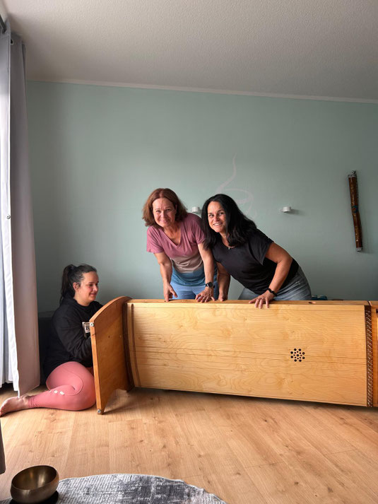 Beim Aufbau hatte ich tatkräftige Unterstützung und ab sofort könnt ihr ihn im Rahmen einer Klangbehandlung erleben.
