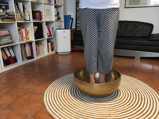 Die wunderschönen Klangschalen auf und um meinen Körper herum ...